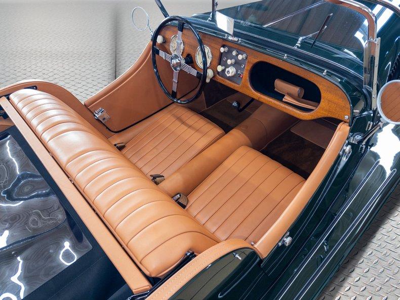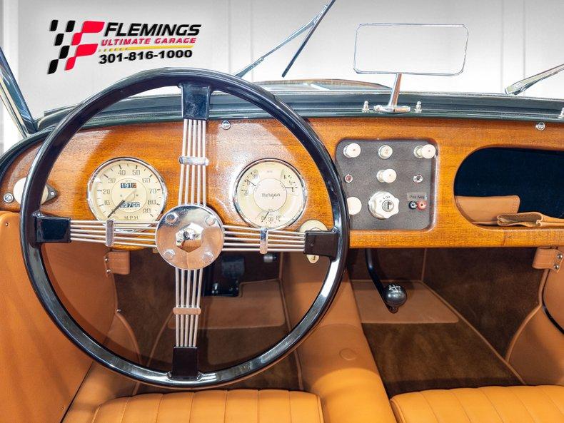 '57 MORGAN PLUS 4/4 ROADSTER BEAUTIFULLY RESTORED • Beautiful restoration incredible classic color combination ( look under this car !) • Classic styling with its long narrow hood cycle style fenders and seeping rear fenders • Rebuilt correct Inline 4 Cylinder Engine detailed for show • Rebuilt correct 3-Speed Manual Transmission • Restored Steel Frame with Traditional Morgan Wood components • Mirror Finish Classic British Racing Green paint professionally show waxed and detailed • Great looking Tan Bucket leather interior w/ matching door cards. • Optional Woodgrain Interior Trim with great looking new carpet and door panels • Full array of Smiths gauges including 120 MPH Speedo 6K RPM Tach Oil Temp Amps and Fuel • Great looking Banjo 4 spoke stainless and wood spoke steering wheel • Show Ready Detailed Engine Compartments secured with that great looking real Leather Bonnet Strap • Great Looking Chrome and Stainless Trim • Optional soft top and tonneau covers • Matching rear spare and tool kit. • Great sounding factory style exhaust system • Freshly Restored roadster 4-speed in classic British racing green! Show or drive collector quality investment grade '57 Morgan plus 4/4 Roadster Classic