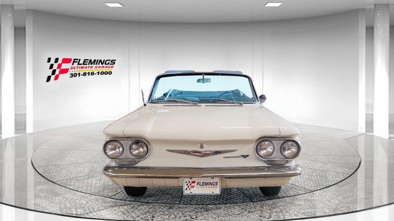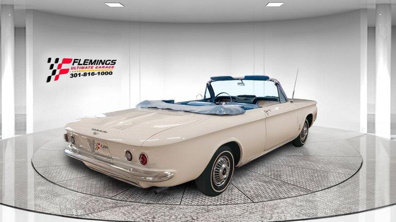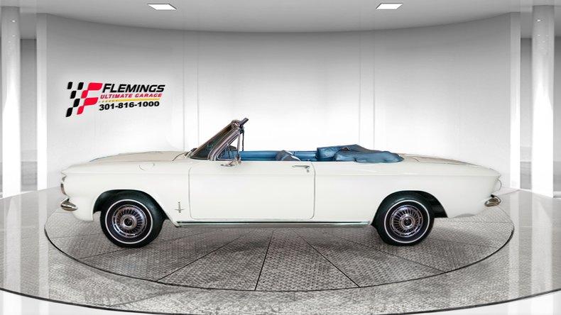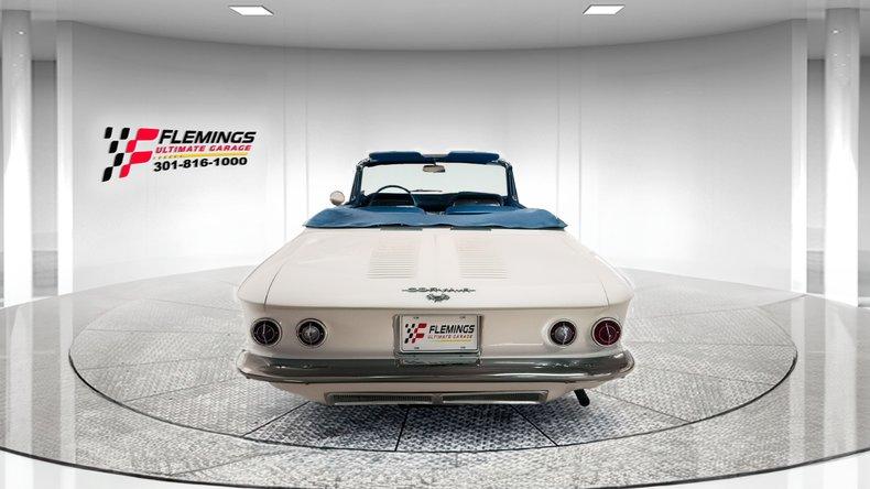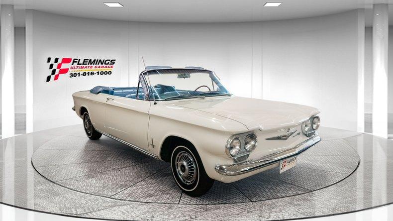 '63 CORVAIR MONZA CONVERTIBLE RESTORED LOOK UNDER THIS CAR! • Beautiful Ground Up restoration of this classic mid engine convertible • 1 of very few Monza 6 cylinder convertibles built (How many are left?) • Matching Numbers 2.4 liter 6 cyl Monza Engine with Correct twin Downdraft Carbs • Optional Rare 4-Speed Manual Transmission • Swing axle Independent Suspension • Brand new Mirror Finish Correct "936" Coded Ermine white paint show waxed and detailed • White Power Convertible Top with Matchingg Boot • Great looking new Chrome and Stainless Trim • Great looking Blue bucket seat interior with factory console • Restored Dash with Factory Gauges including 120 MPH Speedo Clock and Fuel • 2-Spoke Matching Steering Wheel • Original AM Delco Radio • Show Ready Detailed Engine Compartment • Show detailed and carpeted trunk compartment • Stainless wheel covers w/ white wall radial tires • Great sounding Exhaust • Original Owners Manual and service books • Show or drive this Investment Grade Collector Quality '63 Corvair Monza Convertible