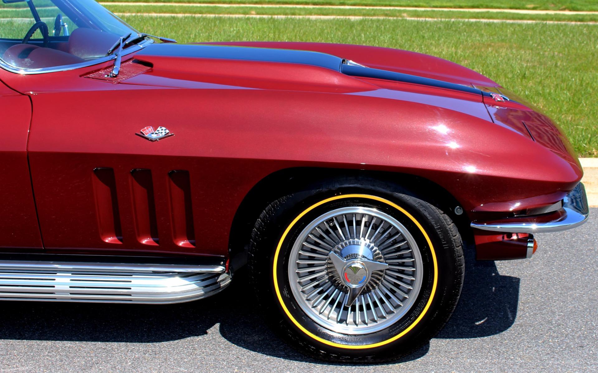 Professional, photo documented restoration of this Ultra-rare, 1 of only 8,186 coupes built(23,564 corvettes produced in 65), Rebuilt, matching #s Hi-horsepowerL79 Chevrolet 327ci V-8 @ 350HP, Optional 4-speed close ratio manual trans, Original Heavy Duty rear fully IND rear differential with Posi-trac, New 4-wheel fully independent suspension, Mirror finished, correct coded M-M Milano Marron metallic paint, Great looking, correct coded 435 Maroon Bucket seat interior with full factory console, Full factory gauges including 7K RPM tach, 160mph speedo, oil pressure and temp, Original Corvette AM/FM radio with power antenna switch, Optional Teakwood Steering wheel, Great looking chrome and stainless trim, First year 4-wheel disc brakes, Optional fast-ratio power steering, Show detailed engine compartment, Original Knock-off style wheels w/ period correct Goldline radials, Great sounding factory side pipe exhaust, Classic styling, #s matching, original owners manual, and photos of the restoration!!! This is how you buy an Investment Grade, Collector Quality 65 Corvette.