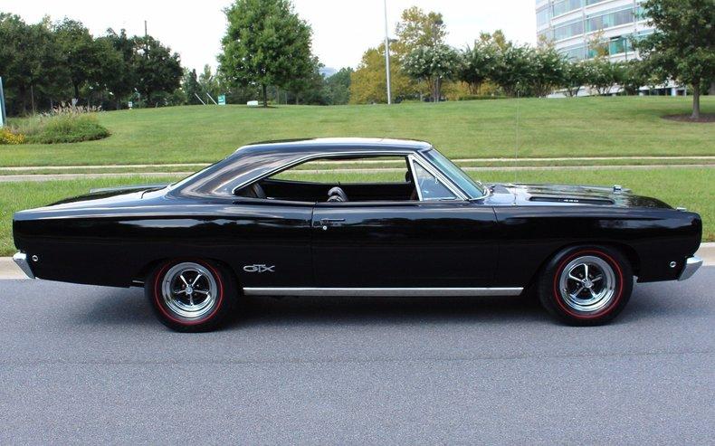 "68 PLYMOUTH GTX Beautiful example of this iconic muscle car Chryslers Legendary 440cid V-8 Super Commando V-8@375hp A833 close-ratio 4-speed manual transmission Heavy Duty Sure-grip rear diff with 3.73 gears Mirror finish Black Velvet paint professionally show waxed & detailed Great looking Black Bucket seat interior Full array of factory gauges including 7K RPM Tach and 150 MPH speedo Original style Plymouth GTX steering wheel All new Carpets + floor mats headliner & door panels Great looking chrome and polished stainless trim Optional fast-ratio power steering Show ready detailed engine compartments Detailed trunk with correct Mat Period correct 15"" Chrome Magnum 500's wheels with Red-line Radials Great sounding dual exhaust big block power 440cid V8-4 speed-Black on Black too its that kind of car! Professionally reproduced and restored includes the fender tag and receipts for restoration Show or drive this collector quality 68 GTX."