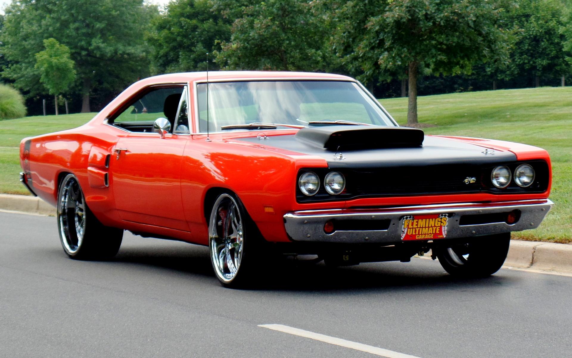 '69 A12 lift off hood Pro Touring Dodge Superbee, Original $100K build combining old school great looks and modern Dodge Charger donor car parts with a complete rotisserie restoration (look under this car!) including frame connectors and modern suspension, New style Fuel injected aluminum head HEMI built by Chrysler @425hp real horsepower, Race ready factory close ratio 5 speed transmission and legendary pistol grip shifter, factory heavy duty rear differential, Custom bolt in new front suspension eliminating the torsion bars and adding adjustable coil over suspension,tubular control arms and fast ratio power rack and pinion steering, Klass forged 20" and 22" 3 piece polished alloys with Pirelli P Zero Nero's, Great sounding custom bent stainless steel exhaust, Mirror finish HEMI orange paint with matt black R/T ( Rapid Transit) stripes and lift off hood, Modern Charger power Black leather sport bucket interior (Matching dash, door panels & console too!) Custom fitted Charger modern dash w/ full gauges inc 140mph speedo and 8k tach, 3 spoke Billet specialties leather and stainless steering wheel, Baer 14" cross drilled and slotted 3 piece rotors and hemi orange color matched 6 piston caliper brakes, Lowered for a great looking stance, Hi Flow aluminum radiator w/ dual electric fans, Dynamat sound deadening for the floors-firewall-trunk, Polished Billet engine accessory pulley system, Billet pedal dress up set, H.I.D Headlights,modern original Charger keyless entry and ignition switch, High end Pioneer digital sound system w/AM/FM/CD/SAT/iPod jack, Detailed show ready engine compartment & trunk compartments, professionally reproduced and restaored, this is the way you would build it if you had 3 years and a $100K but now you can save a ton and be driving it this weekend. Financing available on this muscle car.