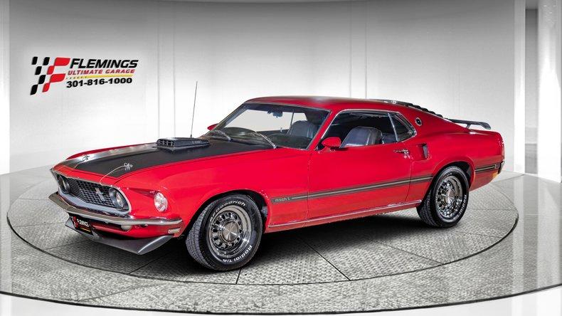 "'69 MACH 1 428 COBRA JET RAM AIR •Spectacular RARE Investment grade ""R"" code ""Ram air"" Cobra Jet mustang beautifully restored (look under this car ) •1 of only 1021 Candyapple Red Automatic 428 Mach 1s!! (almost 300000 mustangs produced in '69!) •Date coded 428cid ""Cobra Jet"" Big Block Ford V-8 w/ original shaker hood @335hp •Date coded Cruise-O-Matic Auto transmission •Date coded Optional 3.50 axle ratio Factory Heavy Duty 9"" rear differential with traction-lok •Mirror finish correct ""T5"" coded Candy Apple Red paint show waxed and detailed •""Shaker"" Ram Air hood w/ Blackout treatment •Optional Front and Rear Spoilers •Optional rear window louvers •Great looking Black Bucket seat interior with full factory console •Full array of factory gauges including 8K RPM Tach and 120MPH Speedo •Optional Woodgrain interior trim •Optional Rim-blow steering wheel •AM/FM/Cassette stereo sound system •Show ready detailed engine compartment •Detailed trunk w/ full spare & jack instructions •Great looking chrome and stainless trim •Factory power disc brakes •Ultra-sharp fast-ratio power steering •Great sounding dual exhaust with factory tips • Correct factory chrome GT wheels w/ fresh BFG radial T/A's •Loaded with Documentation including Deluxe ""Marti"" report authenticating the rarity of this Mach 1 Window Sticker & folder full of receipts •This is how you buy an Investment grade ""R"" code big block ram air 428 Mustang Mach even the clock works."