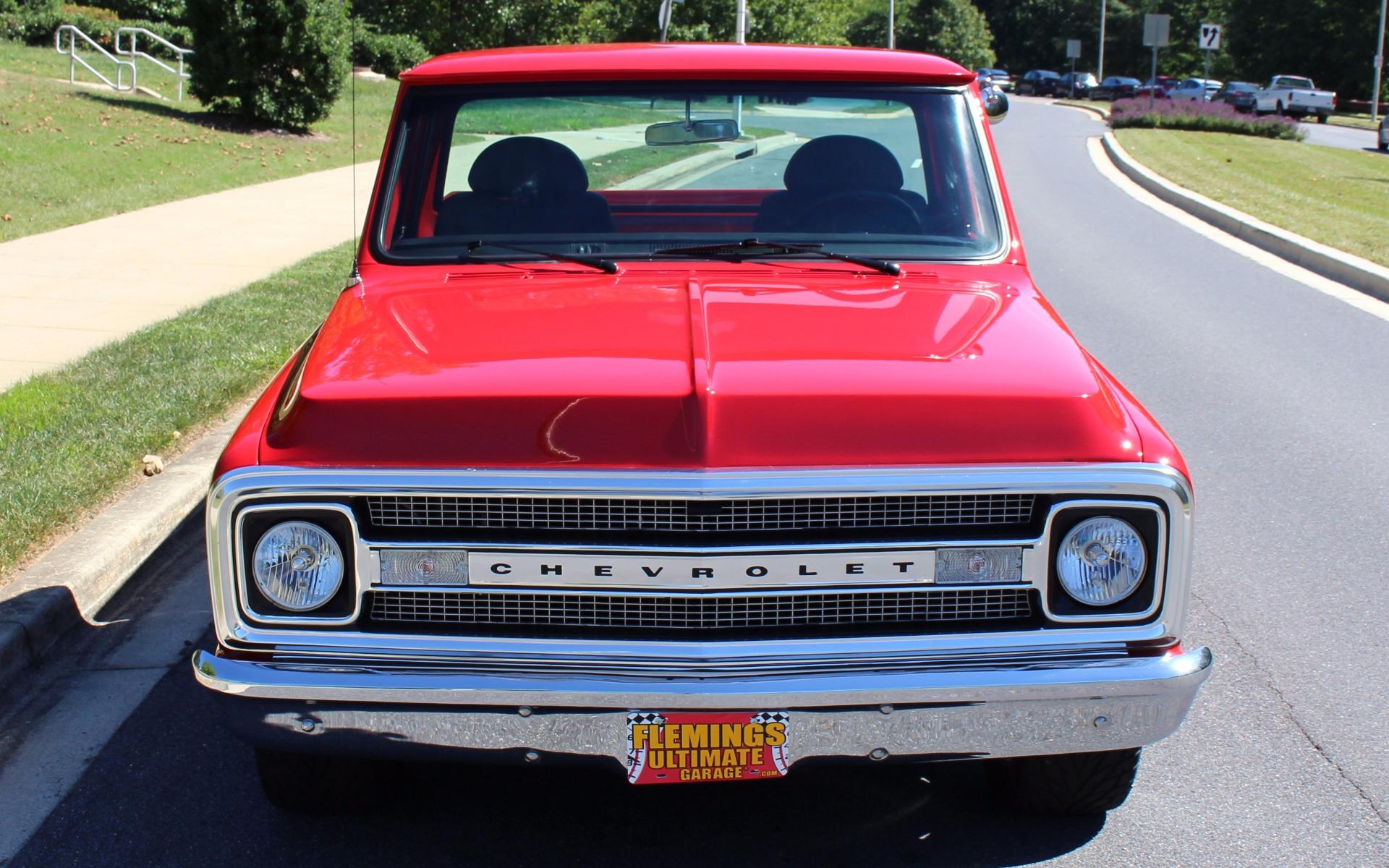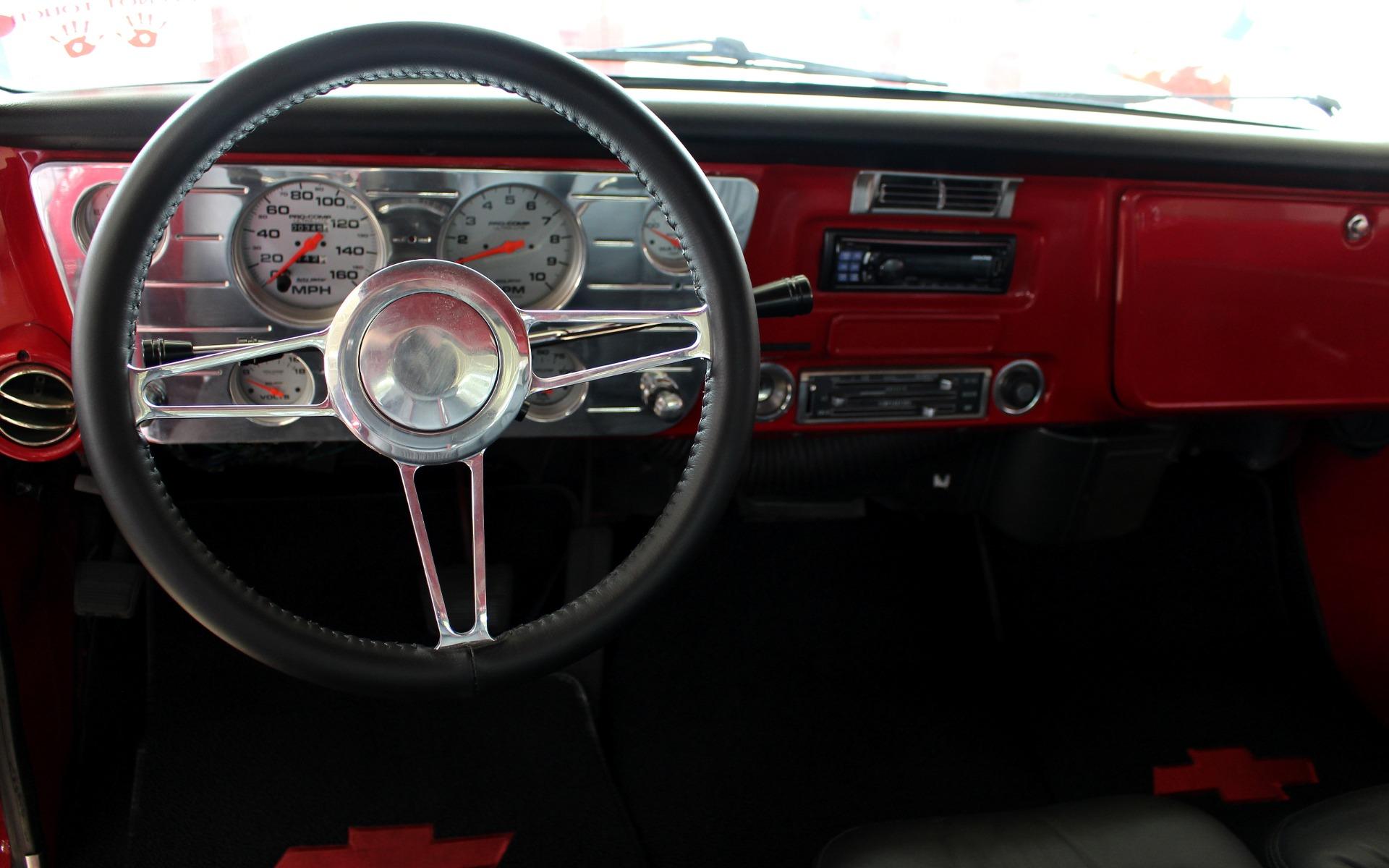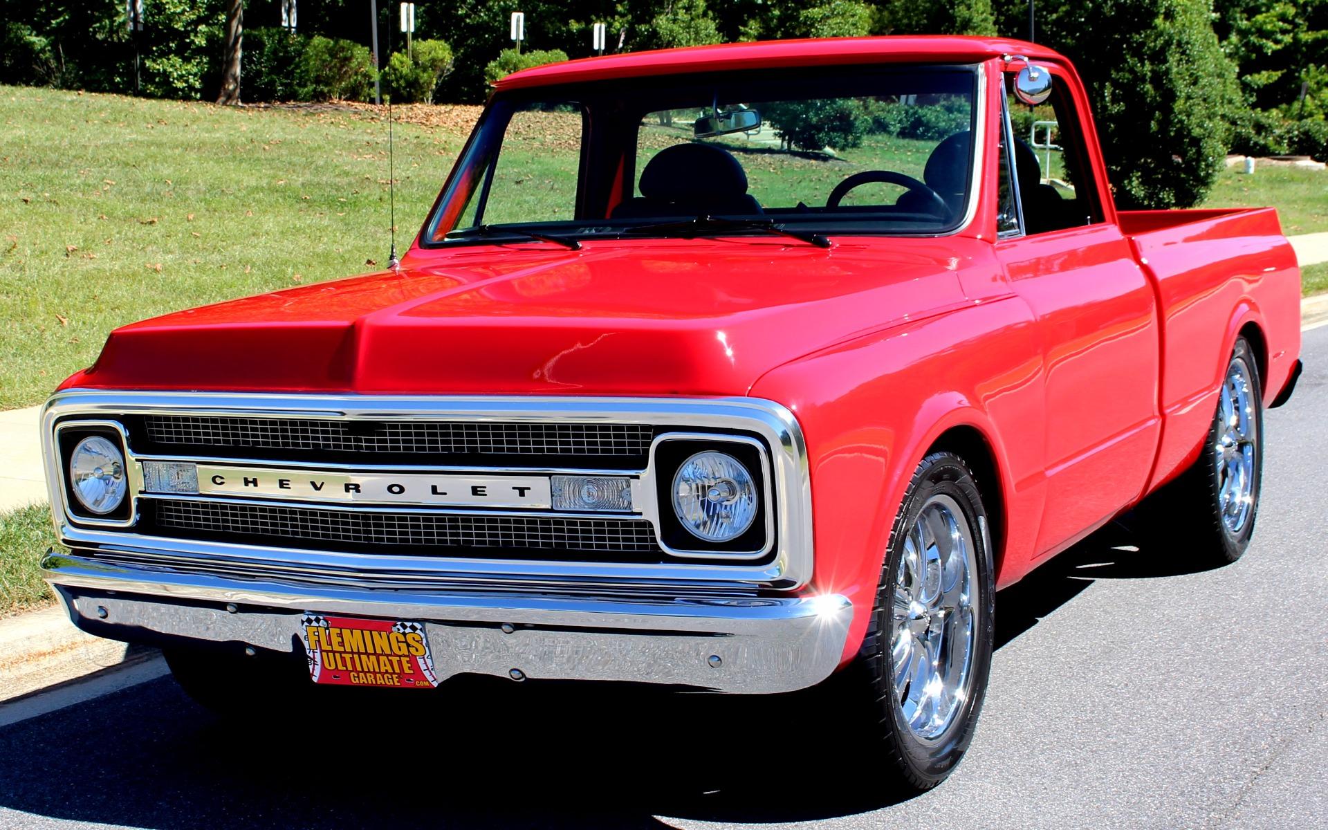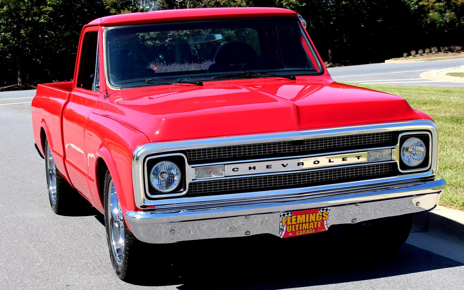 70 CHEVROLET C10 PRO-TOURING Professional, No-expense-spared, restoration of this iconic C10 Pick-up, Showing only 392 test miles!! GM 540cid Big-Block Crate V8 @ 650HP, Upgraded FAST EZ-Fast Electronic Fuel Injection system with Dual Snorkel Intakes and Dart High-Rise Intake Manifold, Upgraded Aluminum High-capacity radiator with dual electric fans, Heavy Duty Turbo-400 Automatic Transmission, 12-bolt Posi-trac rear differential w/ 4:10 Gears, New, Mirror finish Torch Red paint Professionally show waxed and detailed, Color match Heavy Duty Red Bed liner, Great looking Black leather seats with console, Billet Dash with upgraded AutoMeter gauges including 160MPH Speedo and 10K RPM Tach, Upgraded Alpine Am/FM/USB/AUX digital sound with Hi-Fi Premium speakers, Billet 3-piece wrapped Tilt steering wheel, Upgraded fast-ratio power steering, Upgraded power disc brakes, Great looking chrome and stainless trim, Show-ready detailed engine compartment, Upgraded high-capacity Fuel cell, 20 Boss Alloys with high-speed radials, Great sound Header-back magnaflow dual exhaust system for the 540cid Rumble, 540cid Crate motor, Torch Red paint and 650HorsePower TOO! Show or drive this over-the-top, Ultra-cool 70 C10 Pro-Touring Pick-up