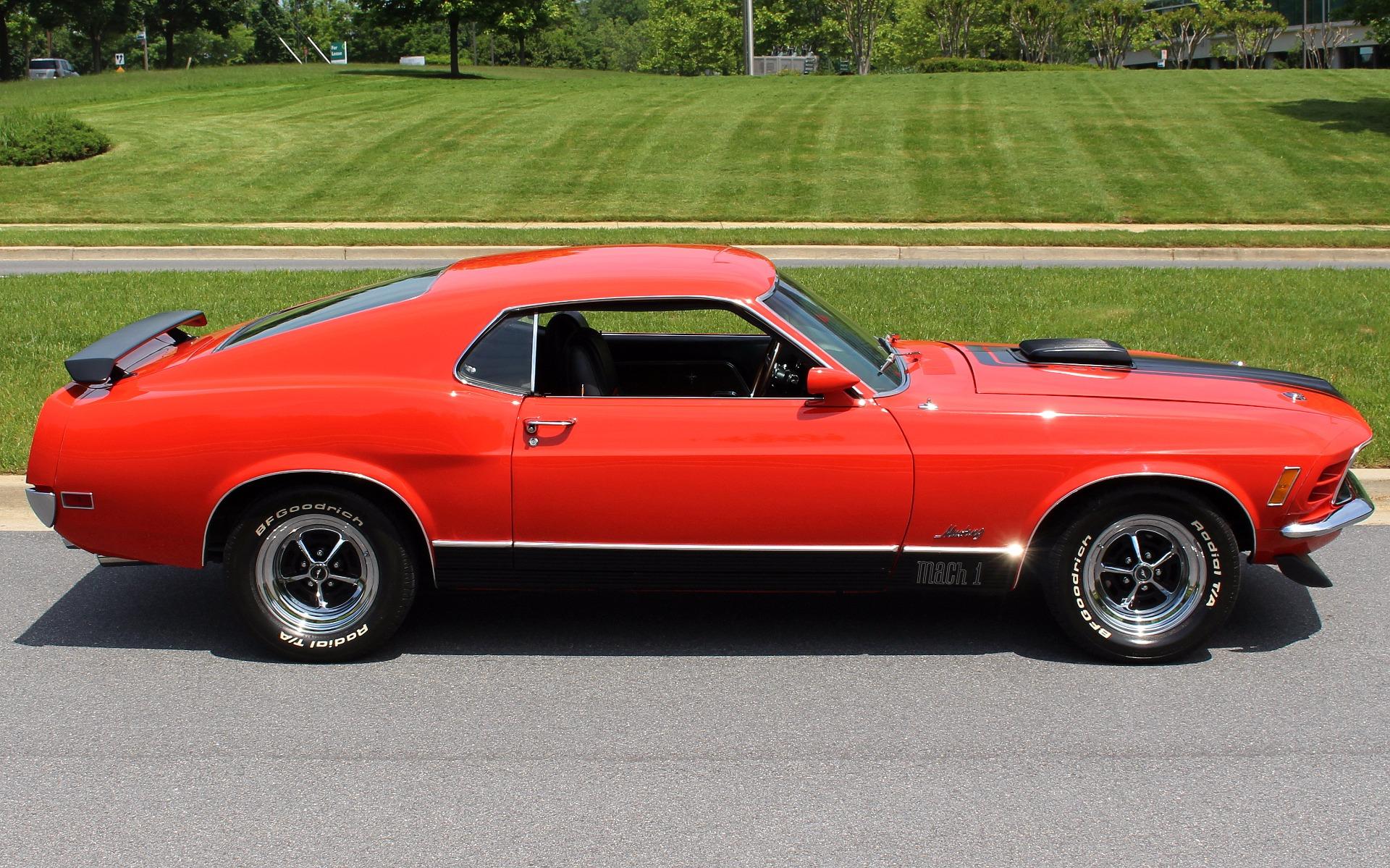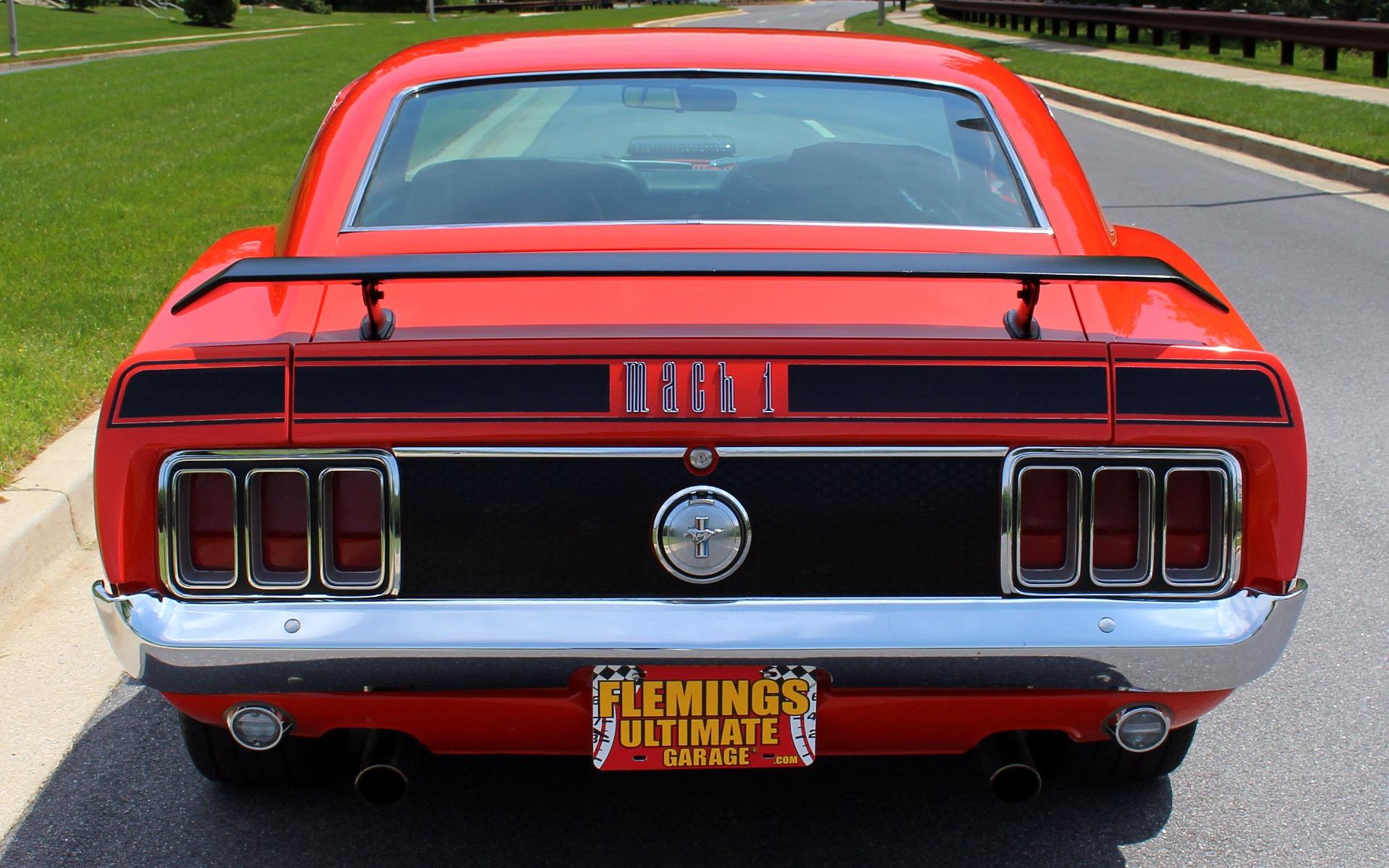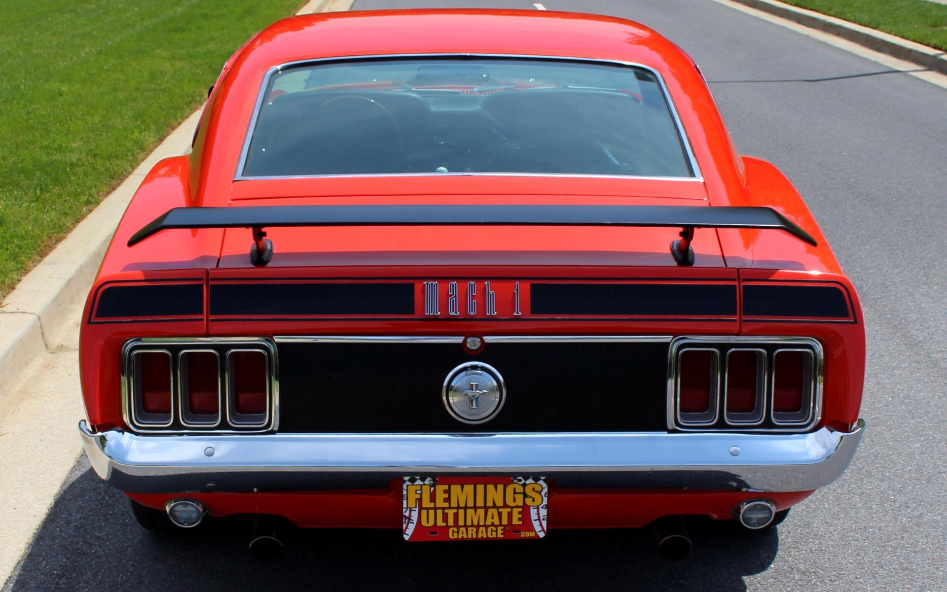 70 MUSTANG MACH 1, Professional, no expense spared, restoration of this iconic Muscle car, Original, professionally rebuilt 351cid M-Code 4bbl V8 @300hp, Original, Rebuilt Ford Toploader 4 speed transmission with Hurst shifter, Rebuilt original Heavy Duty Ford 9 rear differential with traction-lok, Mirror finish, Ultra-rare Calypso Coral paint w/ Black stripes show waxed and detailed, Optional Front + rear spoilers, Optional Black shaker hood ram air with correct fresh air air cleaner, Beautiful Black bucket seat interior with full factory console, Original style Woodgrain steering wheel, Fully array of factory gauges including 8K RPM tach 120mph speedo, temp, and fuel, Mach 1 woodgrain console w/ Working clock, Original Factory Philco AM radio, Ice-cold Factory Air-Conditioning A/C, Show detailed engine + trunk compartments with trunk mat, Upgrade Rack + Pinion power steering, Optional Power Disc brakes, Magnum 500s wheels with High-speed BF Goodrich Radial T/As, Great sounding Flowmaster dual exhaust for that iconic mustang soundtrack, Loaded with documentation like a fully detailed Deluxe Marti Report, original Ford invoice and owners manual, This is how you buy an investment grade, collector quality, Mustang Mach 1.