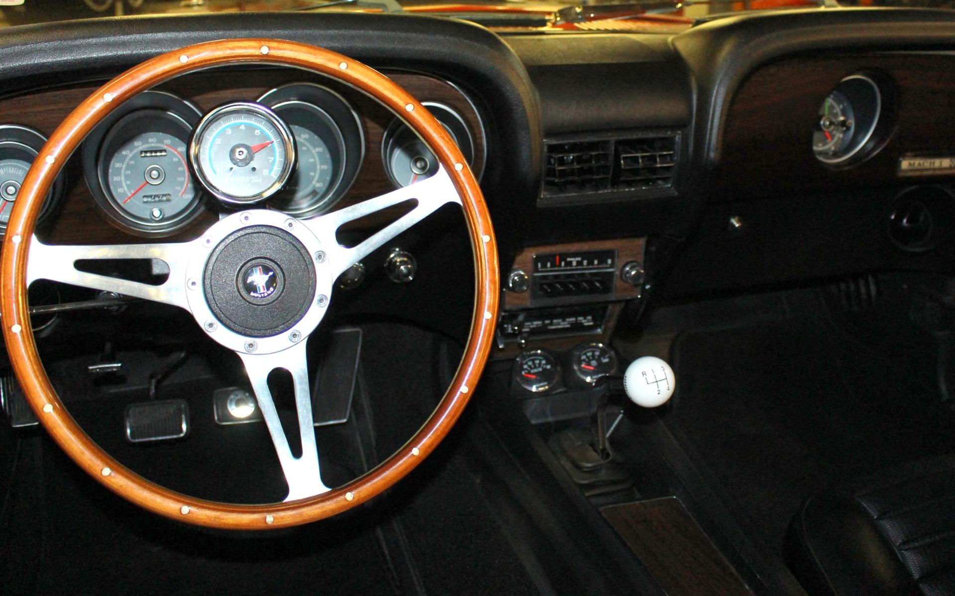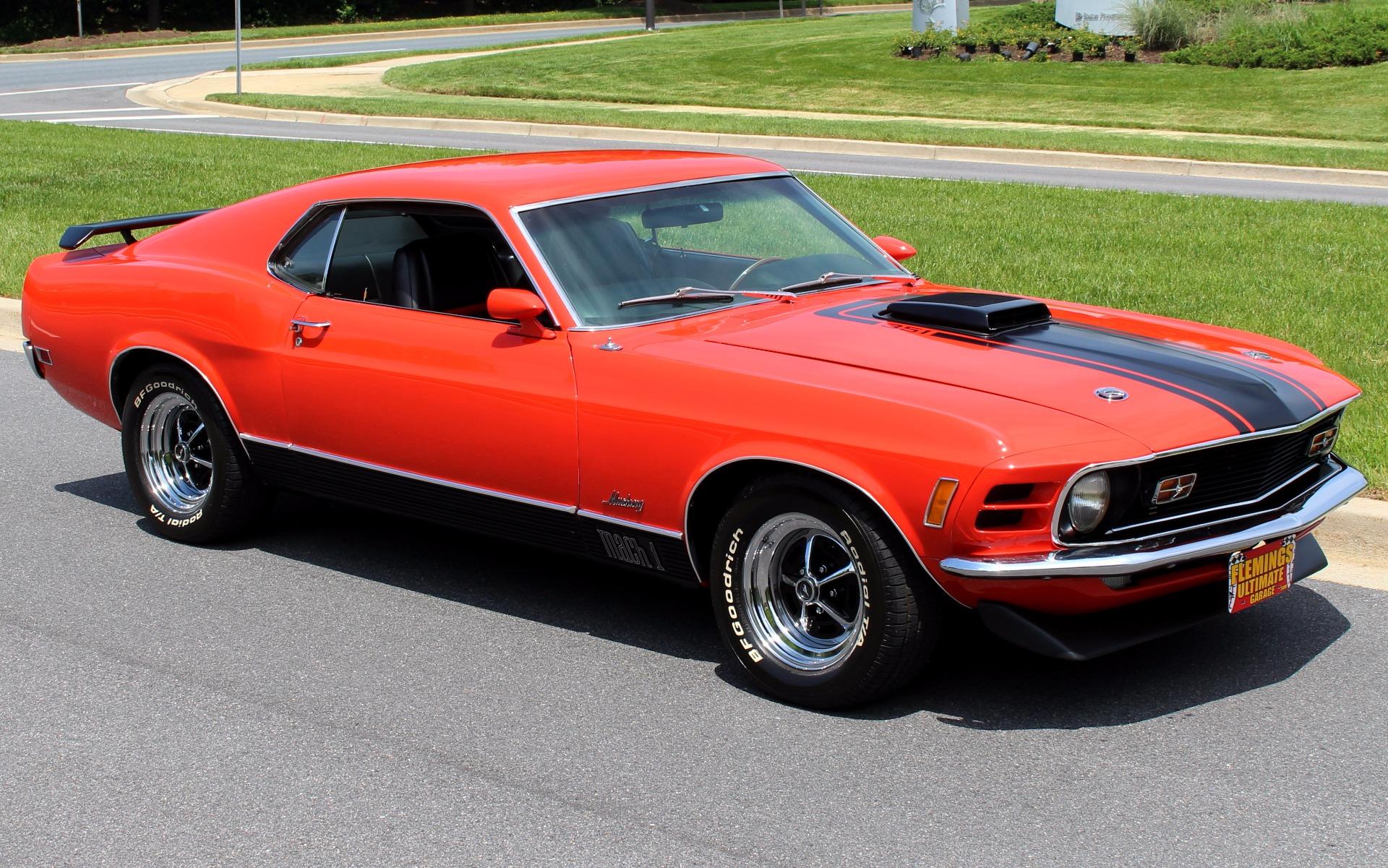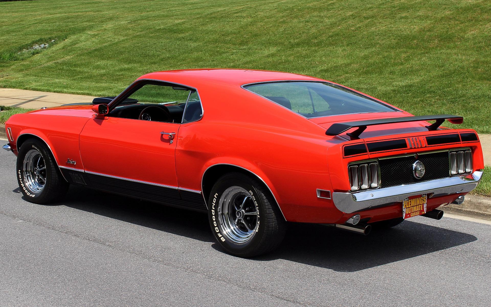70 MUSTANG MACH 1, Professional, no expense spared, restoration of this iconic Muscle car, Original, professionally rebuilt 351cid M-Code 4bbl V8 @300hp, Original, Rebuilt Ford Toploader 4 speed transmission with Hurst shifter, Rebuilt original Heavy Duty Ford 9 rear differential with traction-lok, Mirror finish, Ultra-rare Calypso Coral paint w/ Black stripes show waxed and detailed, Optional Front + rear spoilers, Optional Black shaker hood ram air with correct fresh air air cleaner, Beautiful Black bucket seat interior with full factory console, Original style Woodgrain steering wheel, Fully array of factory gauges including 8K RPM tach 120mph speedo, temp, and fuel, Mach 1 woodgrain console w/ Working clock, Original Factory Philco AM radio, Ice-cold Factory Air-Conditioning A/C, Show detailed engine + trunk compartments with trunk mat, Upgrade Rack + Pinion power steering, Optional Power Disc brakes, Magnum 500s wheels with High-speed BF Goodrich Radial T/As, Great sounding Flowmaster dual exhaust for that iconic mustang soundtrack, Loaded with documentation like a fully detailed Deluxe Marti Report, original Ford invoice and owners manual, This is how you buy an investment grade, collector quality, Mustang Mach 1.