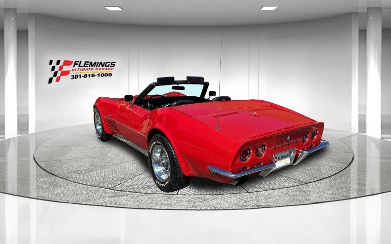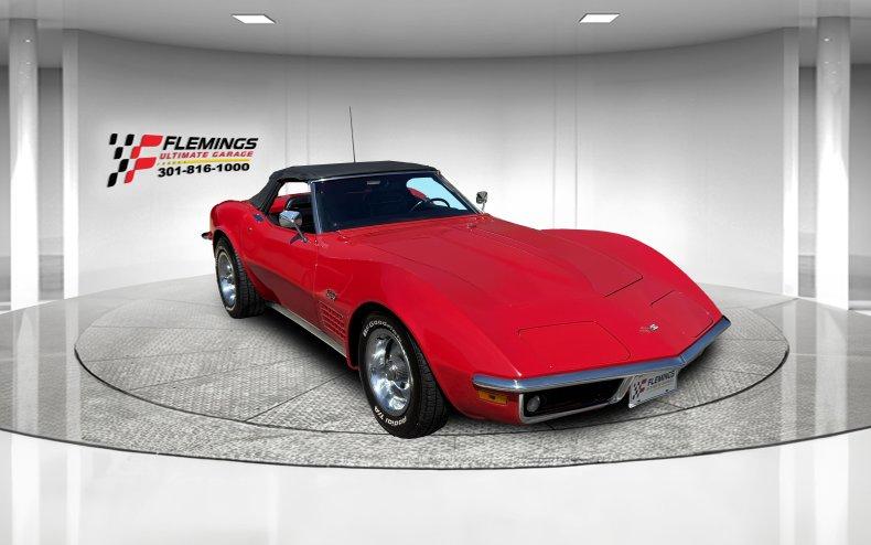 • 72' CHEVROLET CORVETTE ROADSTER #'S MATCHING 4 SPEED • Last year for the chrome front and rear bumper! • Beautifully restored garage kept and well maintained (look under this car!) • Matching #'s Chevrolet 350cid V-8 @300hp • Matching #'s optional Muncie M21 close ratio 4-speed transmission • Posi-traction limited slip differential • Correct coded "973" Mirror finish Mille Miglia Red paint show waxed and detailed • Great looking Black convertible top • Optional black leather deluxe bucket seat interior with center console • Optional power steering w/ tilt and telescopic steering wheel • Full factory gauges w/ 160 mph speedo + 8K tach • Optional 4 wheel power disc brakes • Great sounding flowmaster dual exhaust • Optional power windows • 15" Rally wheels w/ BFG Radial T/A's • 1 of less than a 1000 4 speed convertibles built restored matching #'s and Red! its that kind of car • Show or drive this loaded great 4-speed Corvette Roadster!