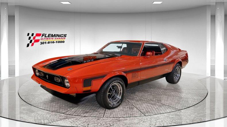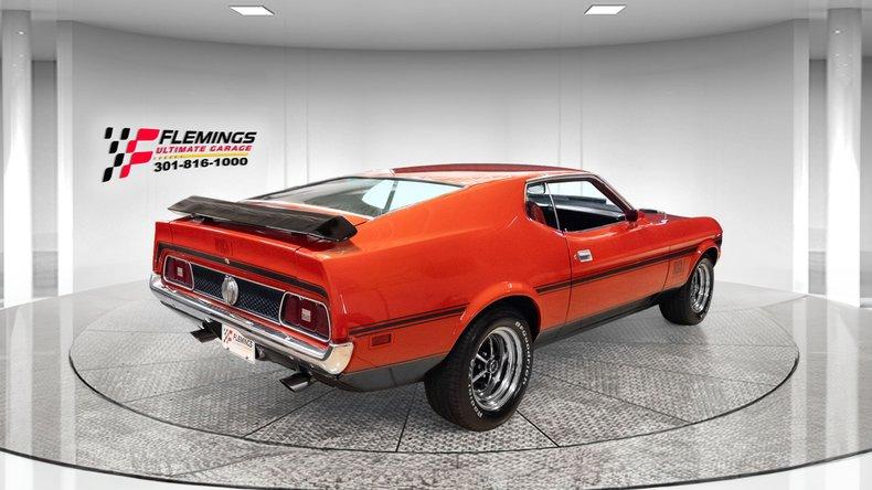72 MUSTANG MACH 1 COBRA JET "Q" CODE LOADED WITH OPTIONS!!! • Beautiful professional restoration of this iconic muscle car w/ Marti Report • Rebuilt "Q" Code 351 Cobra Jet V8 4BBL @266 HP • Rebuilt Optional c-6 select shift automatic transmission. • Rebuilt original factory Rear Differential • Mirror finish bright red paint w/ Black Mach 1 stripes + callouts professionally show-waxed and detailed • Iconic functional Ram Air Induction Hood with correct fresh air air cleaner (expensive setup) • Optional front spoilers • Optional Dual racing mirrors • Optional Mach 1 Vermillion Knit High-Back Bucket seat sport interior with optional console • Full factory gauges including 120MPH speedo 8K tach fuel alt oil etc • Correct Factory Mach 1 Steering Wheel • Optional Factory Select Air Ice Cold Air Conditioning A/C • Factory original Philco AM radio • Optional Sport Deck rear spoiler • Optional rear window defroster • Great looking Chrome and Stainless Trim • Great looking Door Panels Carpets and Headliner • Show Ready Detailed Engine Compartment • Detailed Trunk with Spare and Correct Mat • Optional Power disc Brakes • Optional fast ratio power steering • Optional Magnum 500's wheels with raised white letter high speed radials • Great sounding dual exhaust • Deluxe Marti report showing 1 of only 1274 in this color combination (125093 Mustangs built that year!) • Show or Drive this collector quality great color combination iconic '72 Mach 1 351 Cobra Jet
