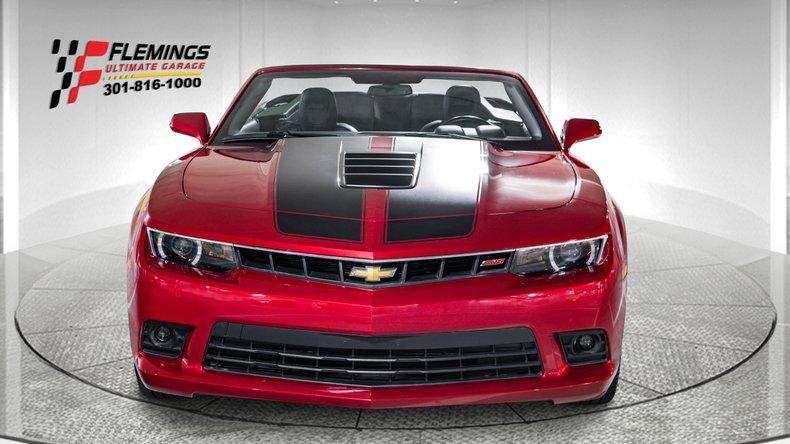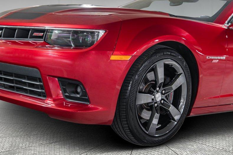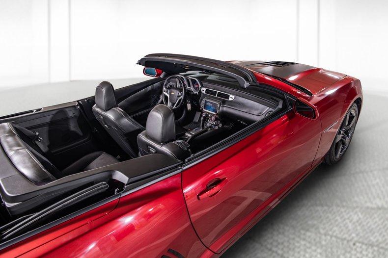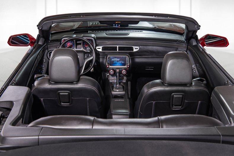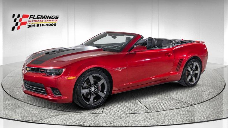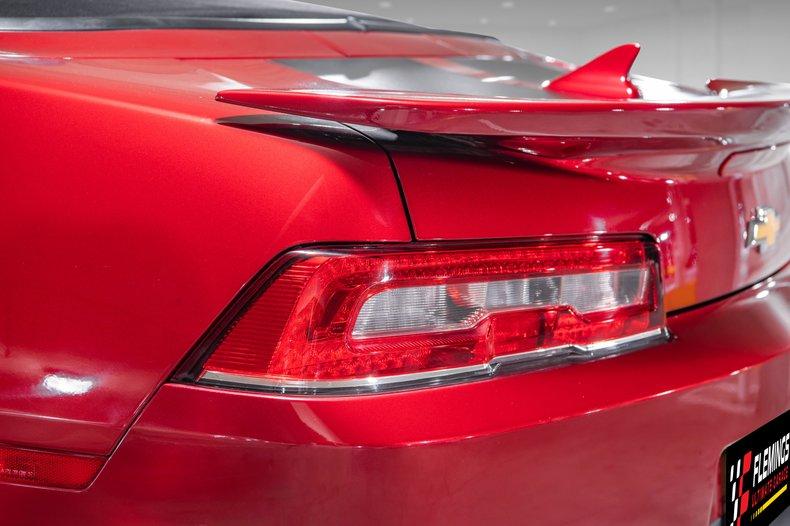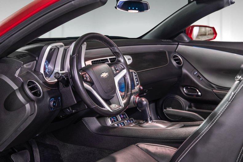 "'14 CHEVROLET CAMARO RS/SS CONVERTIBLE WITH GM PERFORMANCE UPGRADES • Car-Fax Certified Garaged kept loaded w/options and Only driven 2000 miles a year! • Chevrolet 6.2 Liter Direct Injection V8 W/ Performance upgrades rated at 450 HP • Optional 6-speed Automatic Transmission w/paddle shifters • Upgraded Cold Air Intake for Maximum Performance • Independent HD Limited-Slip Rear differential with 3.27 ratio gears • Upgraded Cold Air Intake for Maximum Performance • Mirror FinishCrystal Red paint w/ Black rally stripes professionally show waxed and detailed • Black canvas Power Folding convertible top W/ Tonneau Cover • Front blade spoiler and rear deck spoiler • Great looking Jet Black 6 way leather power sport bucket seat interior w/ full factory embroidered console • Full array of factory gauges including 9K RPM Tach180 MPH Speedo and RS Console Gauge Cluster • Tilt & Telescopic Leather steering wheel with aluminum accents • Optional Chevrolet My Link Color Touch screen 7"" AM/FM/CD/SAT Multimedia touchscreen Stereo with Navigation and bluetooth • Boston Acoustics Premium Sound w/ 8 Speakers and Subwoofer • Factory Ice-Cold Dual Climate Control A/C • Power windows power mirrors Automatic HID Headlights Heads up display back up Camera keyless entry remote vehicle starter and more • Optional RS Package ( 20"" Wheels and HID Headlights incl) • Optional Heads Up Display • Fast-ratio power steering • Optional Brembo 4-wheel Disc Brakes • Optional 20"" Aluminum Wheels finished in Midnight Silver w/ high speed radials • Great sounding full stainless header back dual exhaust with Stainless Sport Tips Original Books Window sticker 2 keys and the top goes down ! Yeah... it's that kind of car"
