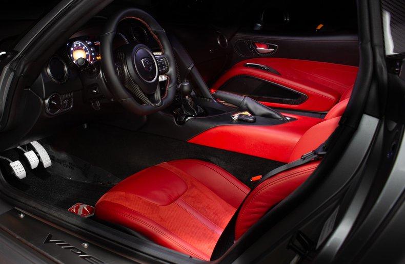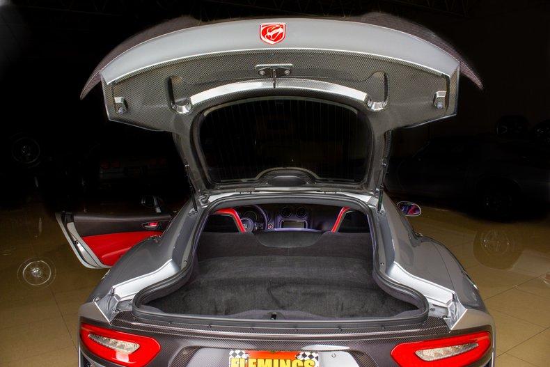 "'14 VIPER GTS COUPE • Original $141880 MSRP & only 942 original miles! • Completely hand assembled by Team Viper 8.4 liter aluminum V-10 SR @ 640hp • 6 speed heavy duty close ratio transmission • Independent rear differential w/posi-traction • Dual Mode Push Button Street/Race Suspension • Mirror finish Billet Silver Metallic Paint show waxed • Optional Exterior Carbon Fiber Package • Optional Advance Aerodynamics Package • Optional SRT Hood and Carbon Rear Lip • Great looking Red Preferred Suede and Leather Power Sport Seats with Black/Red Interior • Leather Dash with Full array of gauges including 220MPH Speedo and 7K RPM Digital Tach • Optional Interior Carbon Fiber Accent Group • Factory SRT 3-spoke Black Leather w/ Red Stitching Steering wheel with Tilt Column • Ice Cold Factory Air-Conditioning A/C • Factory AM/FM/CD/USB/AUX/SD Touch-screen digital Stereo with SRT High Pef Audio • Dodge UConnect with Navigation + Bluetooth Audio • Loaded with options including power mirrors power windows Power Locks Power Adjustable Pedals Backup Camera Rear Defogger Automatic HID Headlights Wi-Fi Hotspot keyless entry and push to start • SRT Performance Page and Launch Control • Traction and Cruise Control • 4-wheel Power Disc Brakes with Red Calipers • Ultra-sharp Rack + Pinion Power Steering • Optional 18""+19"" Venom-Hyper Wheels w/ P Zero Radials • Great sounding side exit exhaust • Copy of Original Window Sticker + Owners Manual • Show or drive this Collector Quality '14 Viper GTS Coupe"